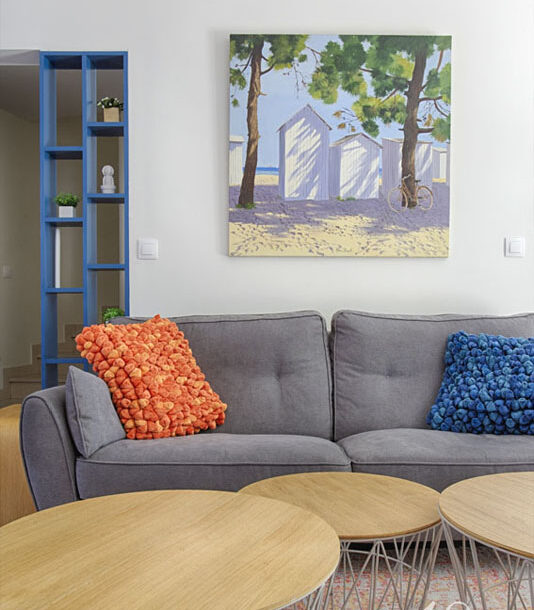 Grâce à notre prestation de visite conseil, nous avons accompagné Caroline dans la décoration de son séjour en harmonisant l’ensemble de la décoration sur la base des jolis tableaux qu’elle avait peint.