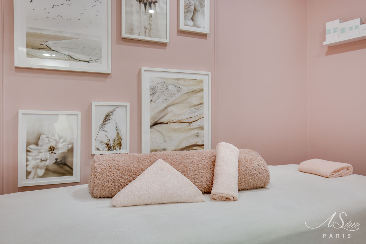 Après plusieurs semaines d’échange et de travail, nous avons réussi à agencer le lieu de façon optimale en créant un espace dédié à la coiffure, deux pièces pour les massages et épilation, un espace onglerie et pédicure.