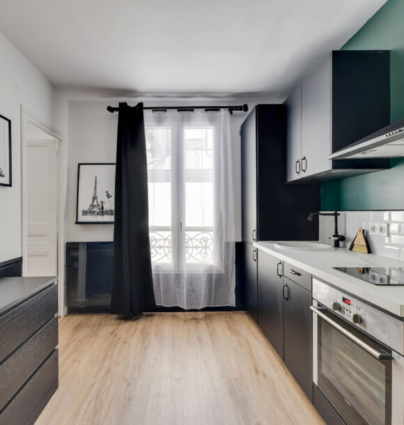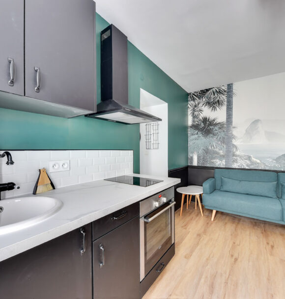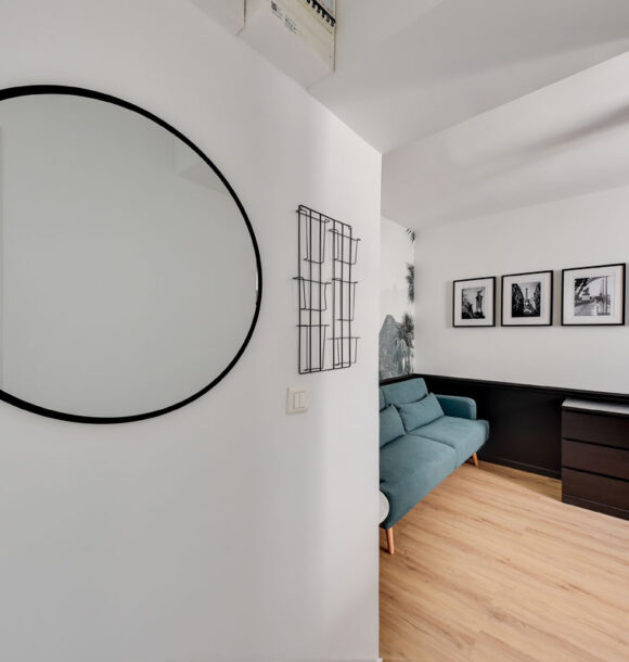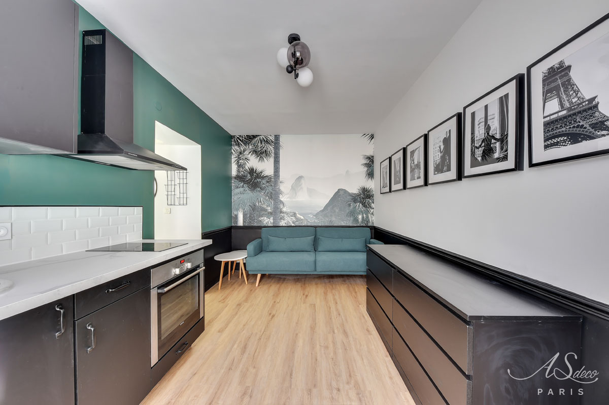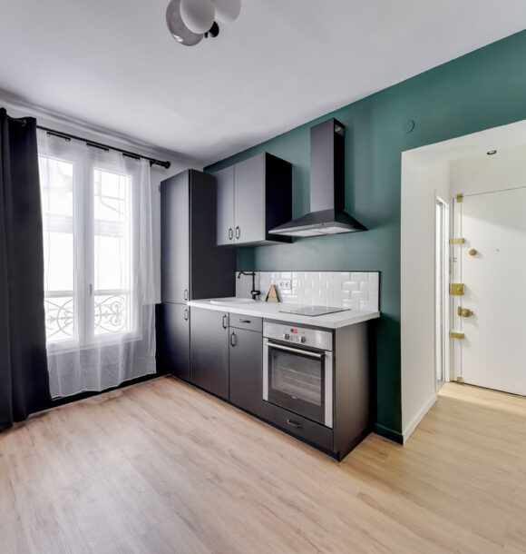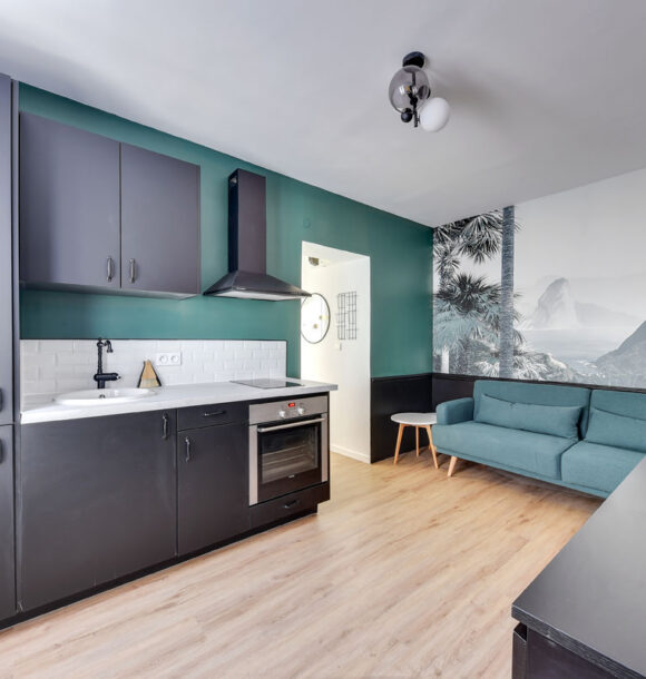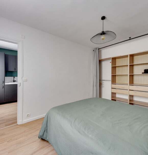 Niché au cœur du 19e arrondissement de Paris, cet appartement type F1 était resté dans son jus mais avait un potentiel détectable dès notre première visite. Notre client, investisseur immobilier, l’a reconnu également et c’est en moins d’un mois que nous avons remis l’ensemble du projet.